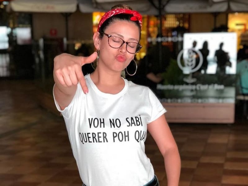 La joven actriz la rompe con "Wear Melo", una de sus poleras con frases célebres de sus actuaciones.
