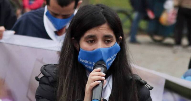 “No quiero que nombren más a Tomás, se los prohíbo! ¿Esa es la forma que tienen de pedir justicia? ¿De honrar a mi hijo? Qué se creen, faltas de respeto”, añadió.