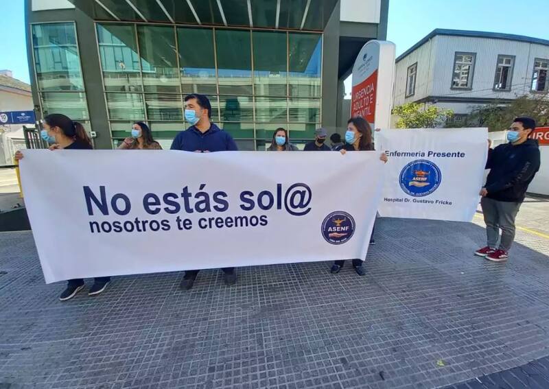 Este jueves, un grupo de enfermeras y enfermeros se dieron cita al exterior del Hospital Clínico de Viña del Mar para expresar su apoyo, tras el deceso de Vanessa.