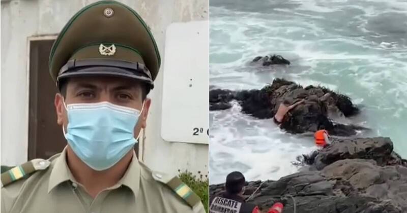“Me amarro una cuerda que me facilitó Bomberos, un chaleco salvavidas, e intenté ingresar al sector de los roqueríos. Fue ahí cuando logré alcanzar a este muchacho, le indicaba que mantuviera la calma. La víctima estaba bastante cansada”, contó el uniformado a 24 Horas.