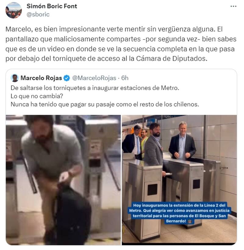 Sin embargo, fue el hermano del Presidente quien paró en seco al sujeto. Además de acusarlo de mentiroso, Simón Boric dio a conocer que ya lo había hecho con antelación.