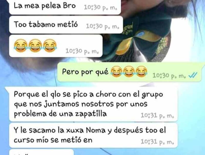 Cuando le preguntaron por qué había sido la pelea, él responde que "porque el qlo se pico a choro con el grupo que nos juntamos nosotros por unos problemas de una zapatilla" (sic).