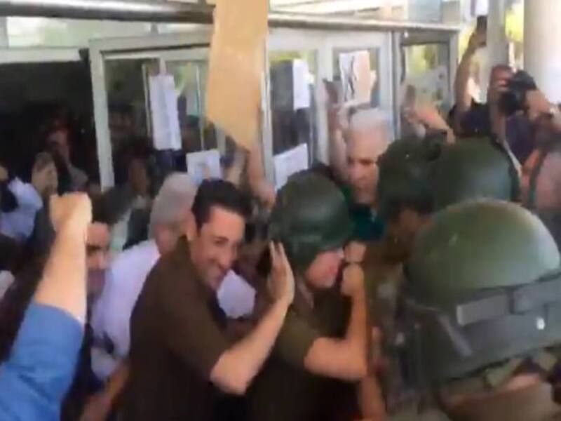 El ministro de Salud fue atacado por funcionarios a la salida del Hospital Padre Hurtado, en la comuna de San Ramón.