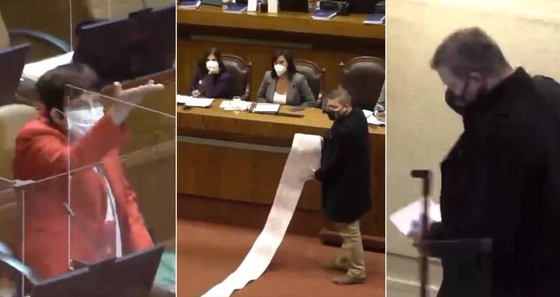 Fue en este contexto que su par Johannes Kaiser se acercó a la ministra, le entregó una hoja y comenzó desplegar el extenso escrito en medio del pleno de la Cámara. Situación que indignó a la diputada comunista Carmen Hertz.