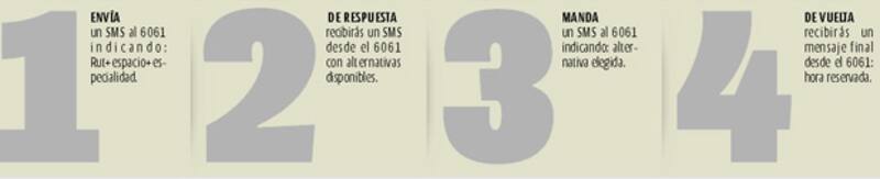 El consultorio debe estar integrado al sistema Hora Salud, luego su funcionamiento es a través de mensajes de texto (SMS) desde cualquier tipo de celular.