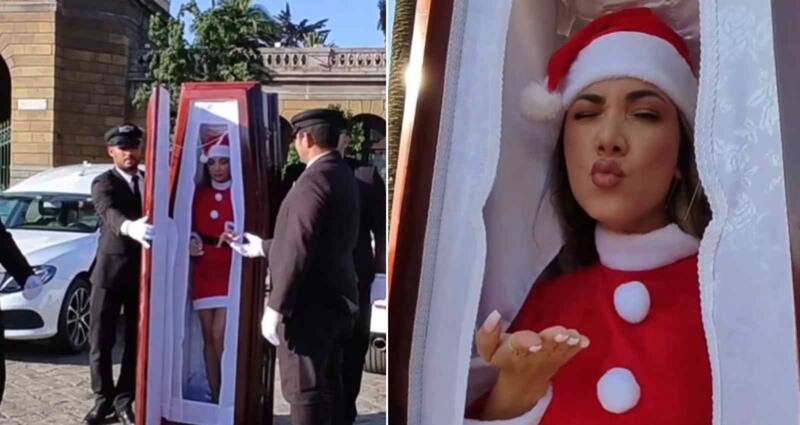 Sin embargo, el detalle que más la atención en redes sociales, fue la aparición de la protagonista, quien se escondía al interior de un ataúd.