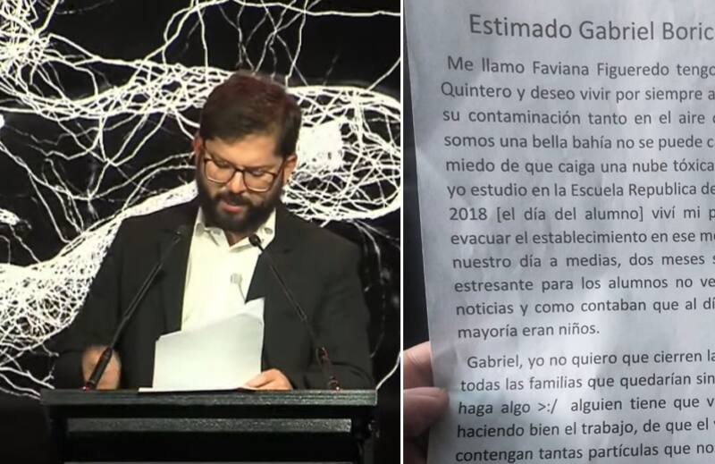 “Durante la campaña, una niña que se llamaba Fabiana me entregó una carta. Ella es de Quintero, vive ahí con toda su familia, pero me dijo que le resultaba cada vez más difícil hacerlo producto de la contaminación”, explicó Boric.