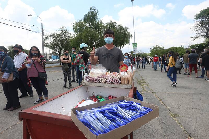 A pesar de que las ventas ambulantes estaban prohibidas y que la desconfianza por la pandemia bajó el porcentaje de venta, Enrique Villa cumplió con la tradición democrática de ir a vender agua y golosinas en el ingreso del Estadio, pero esta vez incluyó un regalo que tentó a más de un olvidadizo. Por cada una de las ventas regalaba un lápiz azul, un bien preciado ayer en todos los locales de votación del país.