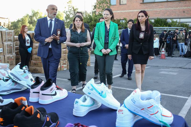 “Se incautaron más de 32.000 pares de zapatillas, avaluadas en 3.700 millones de pesos”, reveló Valdés.