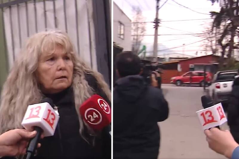 Elena Rojas Crespo, de 60 años, entregaba su testimonio a Tele13 y 24 Horas cuando, de improviso, se oyen al menos cinco tiros en la esquina del pasaje donde vive la imputada.