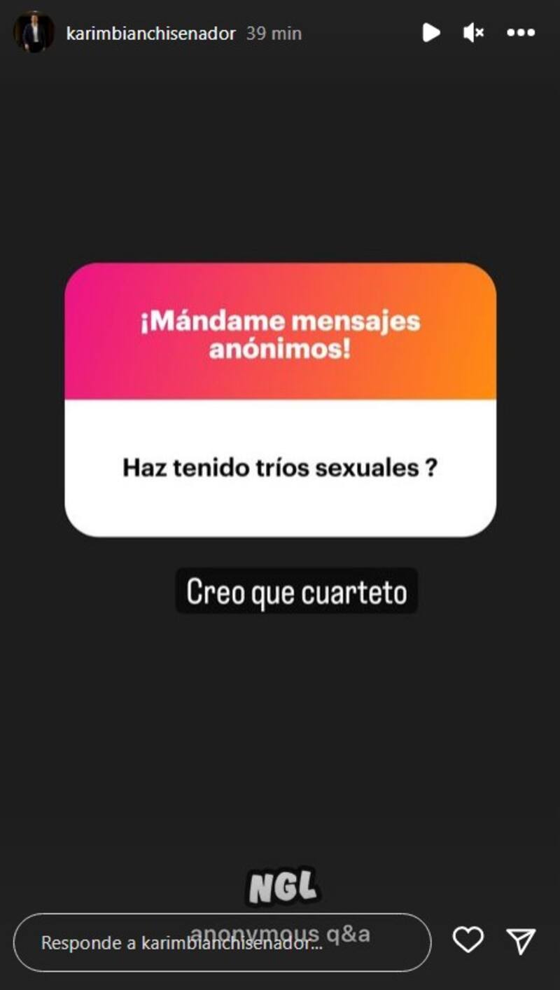 Sin mayores filtros el senador independiente Karim Bianchi se atrevió con el famoso juego de preguntas anónimas en Instagram, recibiendo atrevidos comentarios de sus seguidores.