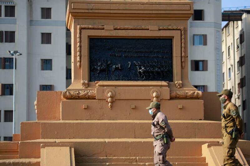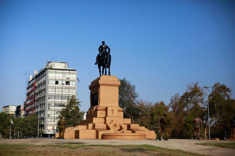 A esta hora, y como se ha hecho habitual en el último año, la estatua está siendo resguardada por personal de Carabineros,