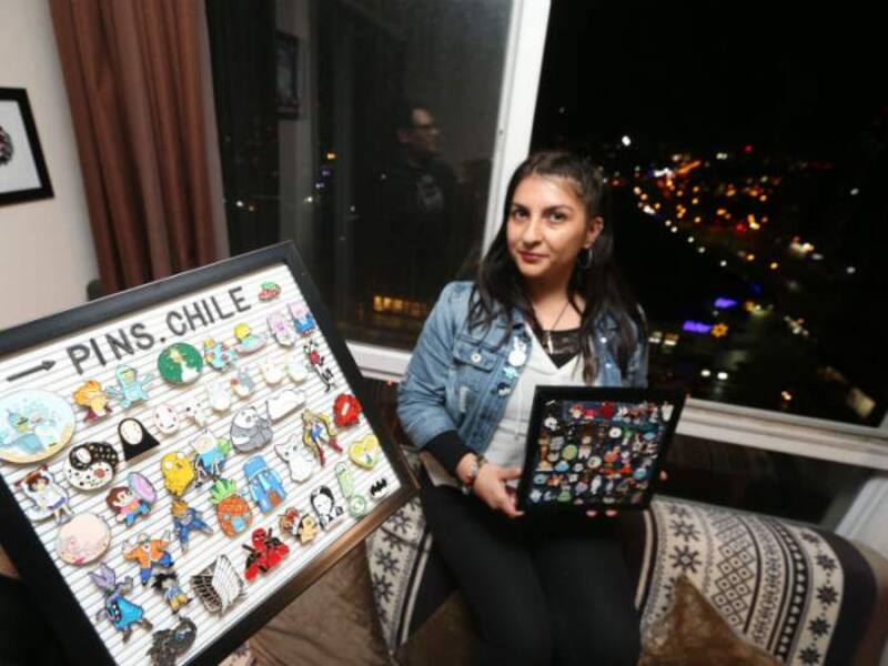 Vanessa Rojas se vino de Talcahuano a Santiago con su emprendimiento "Pins.Chile". ¿Su objetivo? Que los veinteañeros y treintiañeros recuerden su infancia con más de 200 modelos en carpeta.