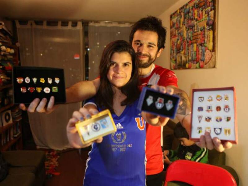 Javiera y Rafa crearon hace unos meses "Mister Pin" con el objetivo de tener todas las insignias del fútbol chileno. En el Instagram @_Mister_Pin venden estos trozos de historia futbolera, pero más que comercializar, ellos buscan dejar un recuerdo más social.