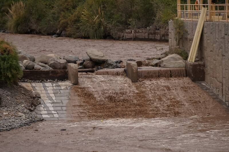 A raíz de esto, la Oficina Nacional de Emergencia (Onemi) ordenó la evacuación preventiva "por riesgo de aluvión" de los sectores de San Alfonso y Melocotón.