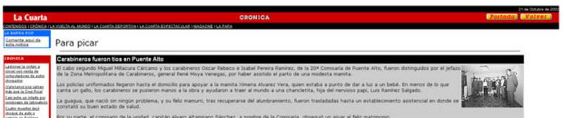 En ese entonces, La Cuarta informaba que el ex funcionario y los carabineros Oscar Rebeco e Isabel Pereira Ramírez "fueron distinguidos por el jefazo de la Zona Metropolitana de Carabineros (de la época), general René Moya Venegas", por haber ayudado en el alumbramiento (ver nota relacionada).