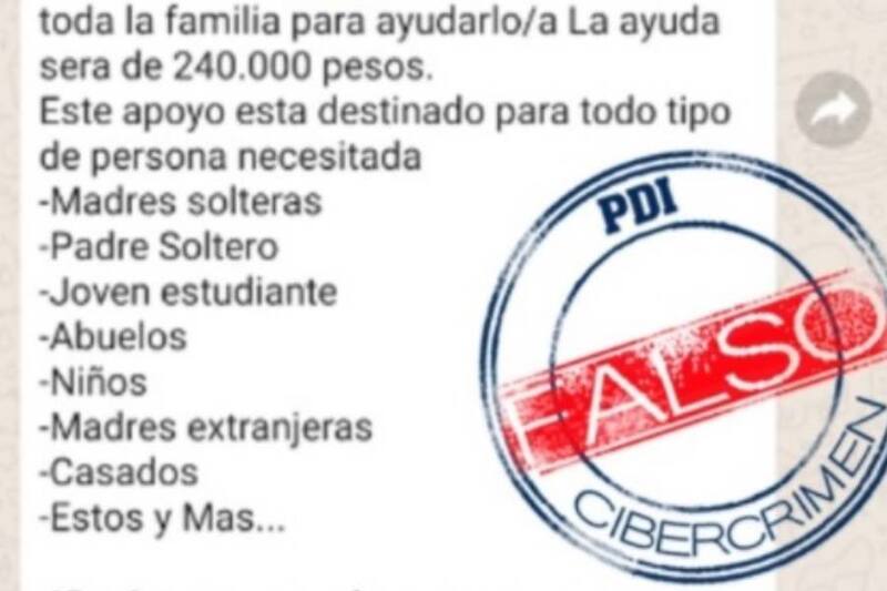 Una segunda estafa, mucho más elaborada, apunta a un falso "Programa Ingreso Solidario". Junto con describir a posibles beneficiarios, en el texto se especifica un aporte de 240 mil pesos.