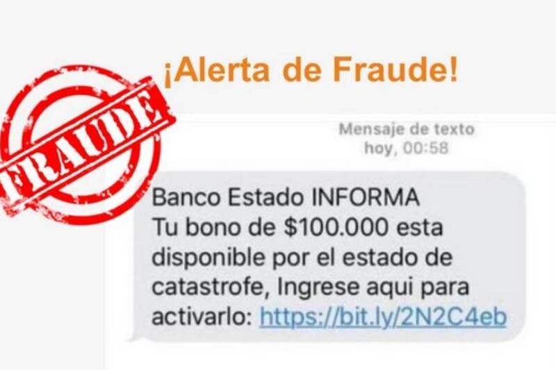 "BancoEstado informa. Tu bono de $100 mil está disponible por el Estado de Catástrofe", reza el falso mensaje.