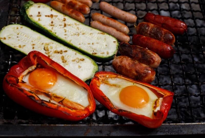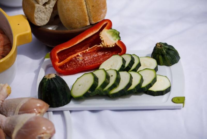 Las vienesas cortarlas en forma de pulpitos (más llamativo y divertido para los niños de la casa), el Lomo cortarlo en medallones, los pimentones rellenarlos con queso o huevo antes de ponerlos al fuego y el zapallo italiano bañarlo en miel y merkén, que según Nacho, le dan un gran sabor.