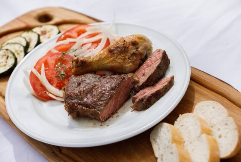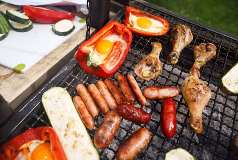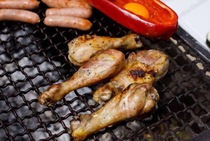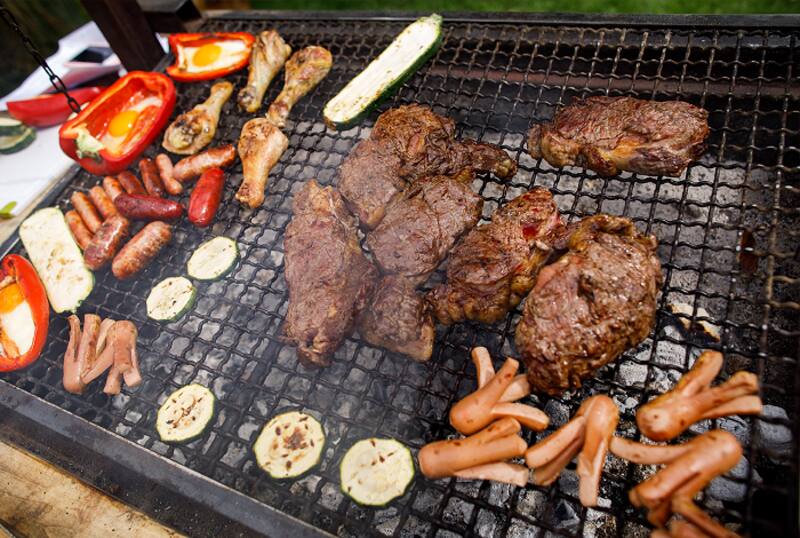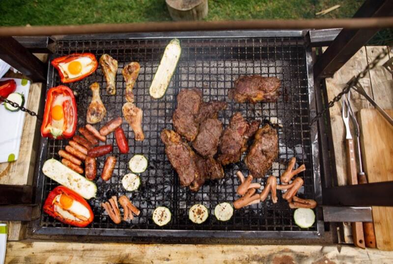 Después de 20 minutos al fuego salen ya las vienesas y choripanes, momento para poner el Lomo liso. El pollo mantenerlo por 20 minutos más y sacar junto con el Lomo.