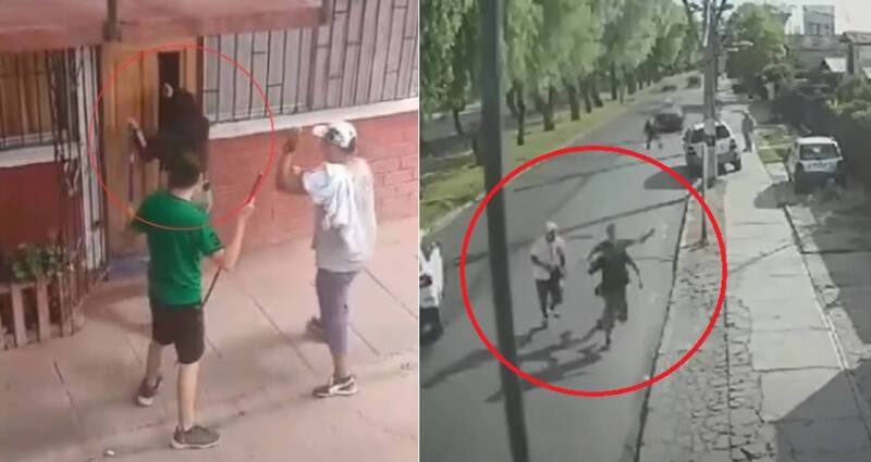 Según se puede observar en un video grabado por un vecino, la joven que participaba de la riña en un segundo se acercó a la puerta y por un agujero recibió, desde el interior, una fatal herida en el cuello.