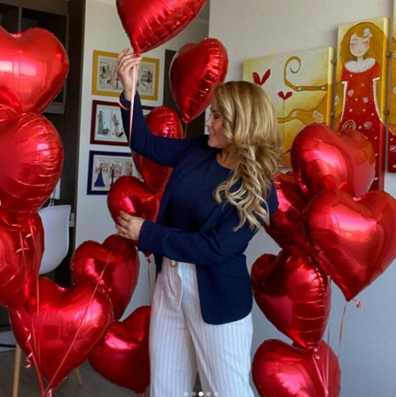 Fue ella misma quien compartió el registro en su cuenta de Instagram, mostrando una serie de fotos en donde se aprecia a la pareja rodeada de globos en forma de corazón.