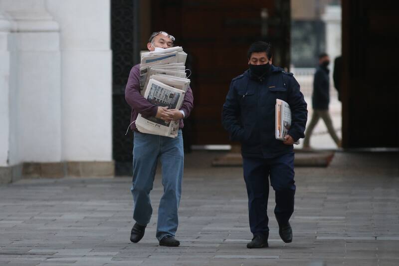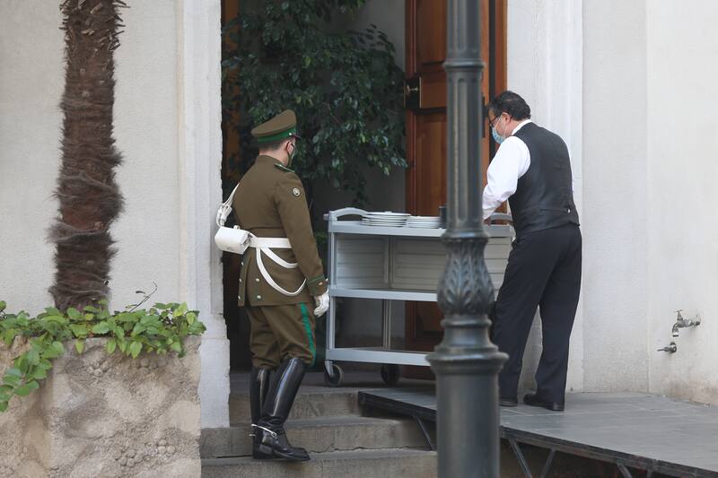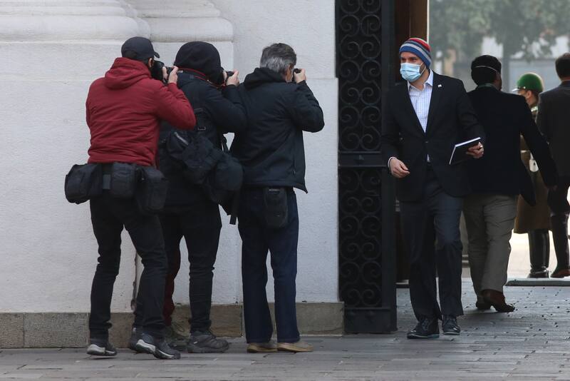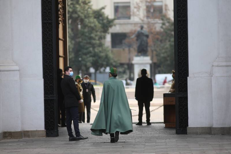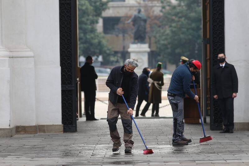 Como cada mañana, temprano comienza el movimiento en El Palacio de La Moneda. Pero la pandemia ha hecho que cada persona que ingresa a la sede de gobierno cumpla con las normas de cuidado de higiene y seguridad.