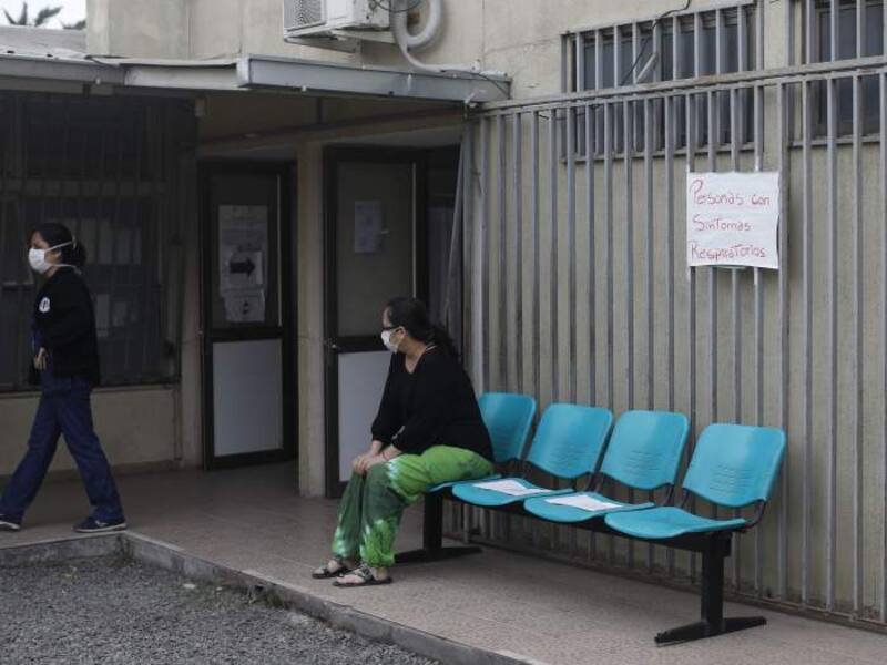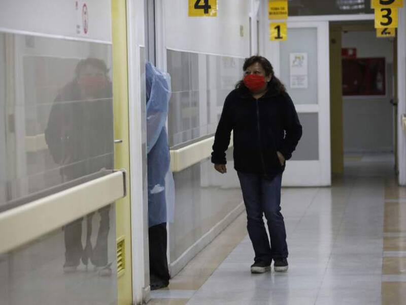 Una paciente que presenta síntomas respiratorios se encuentra en el área de espera a que sea su turno de atención.