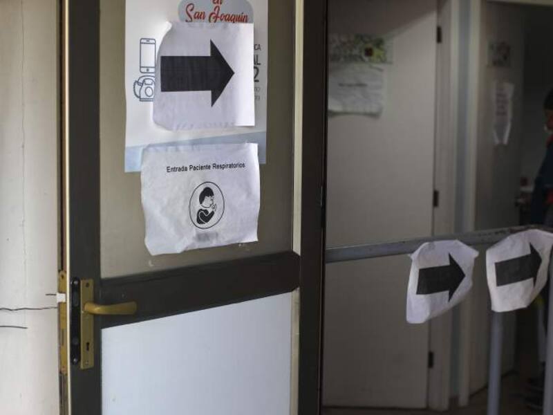 Puerta principal señalando la entrada a los pacientes con problemas respiratorios.