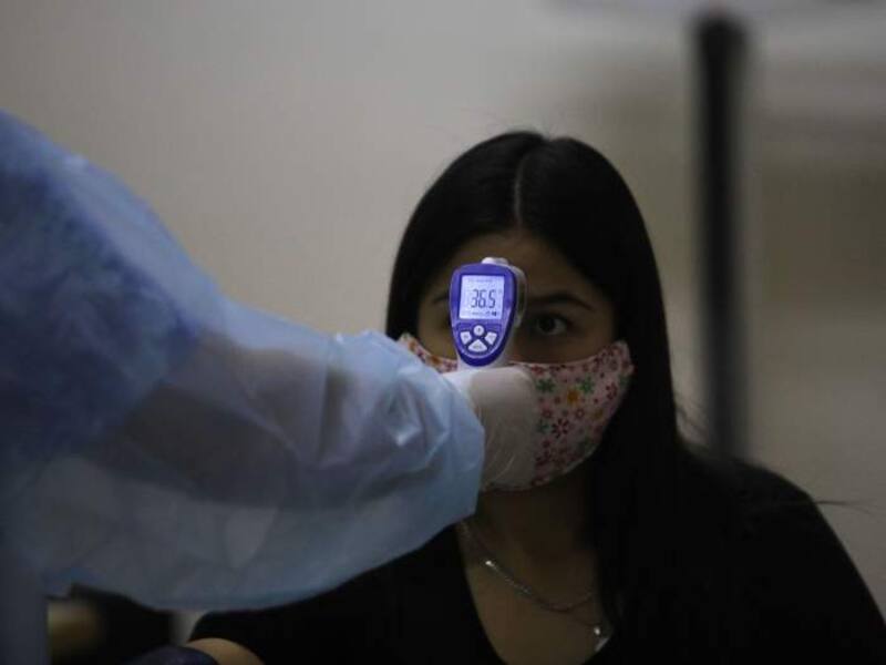 Se registra la temperatura mediante un termómetro digital en la frente pacientes como a los funcionarios para chequearlos.