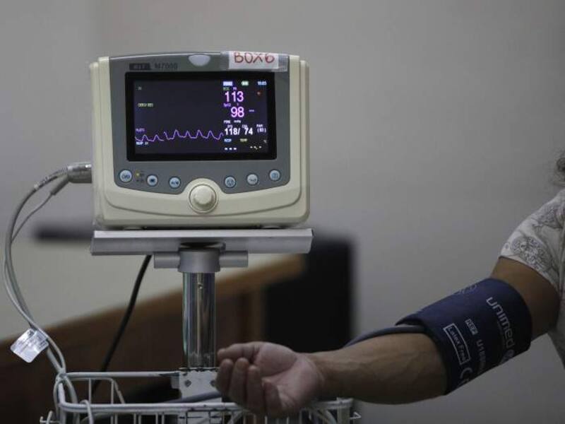 Se le realiza una toma de presión a paciente en el recinto de salud