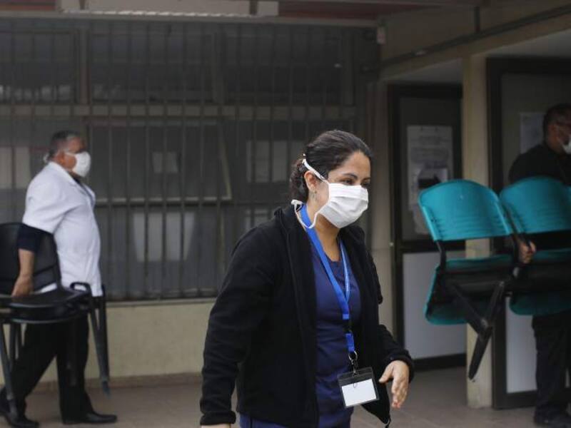 Funcionaria de la salud se dirige a sus labores a pesar del cansancio por las largas horas que llevan en sus espaldas para atender a los pacientes en época de pandemia.