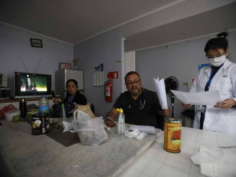 Mientras tanto, enfermeros y enfermeras se alimentan mientras chequean algunos papeles antes de volver a su turno.