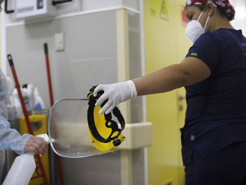 Se limpian los protectores que cubren todo el rostro con productos que eliminen cualquier rastro de virus alojado en el.