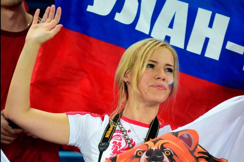 Las mujeres rusas, con la belleza que las caracteriza, desataron las pasiones en las tribunas del Estadio Arena Panranal de Cuiabá, en la igualdad 1-1 de sus peloteros ante su similar de Corea del Sur, correspondiente a la primera fecha del Grupo H.