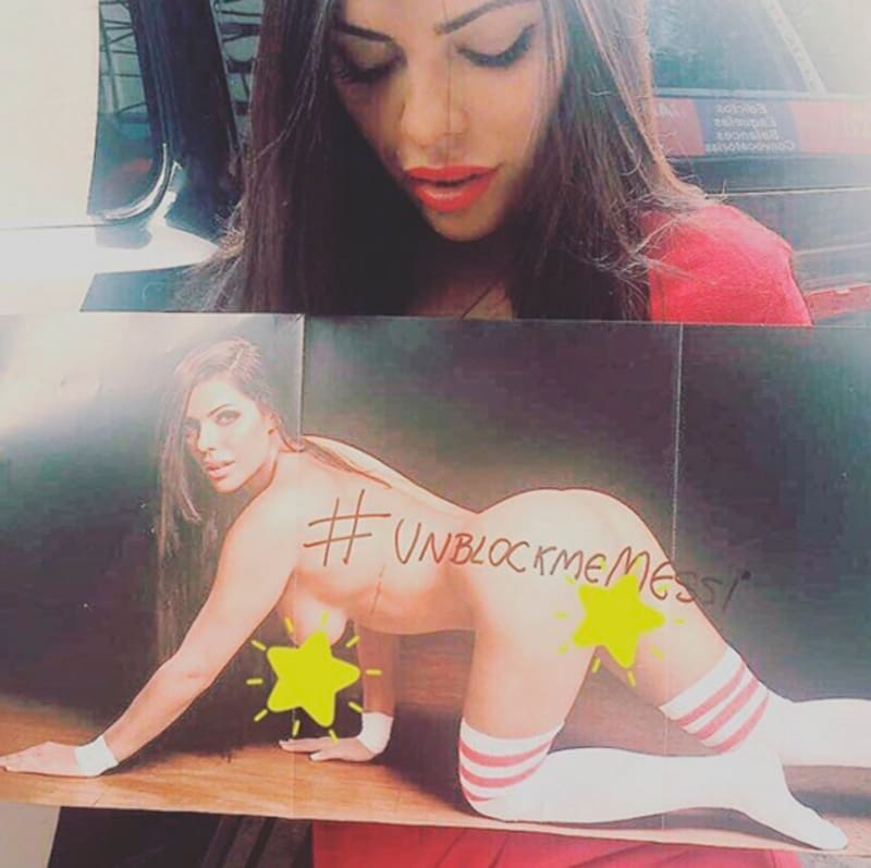 "Soy hincha del Barcelona y muy fanática de @leomessi. Ayúdenme a lanzar una campaña con el hashtag #UnBlockMeMessi. Gracias amigos".