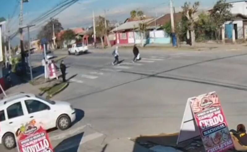 Tal como se puede observar en el video de una cámara de seguridad, la mujer caminaba junto a su hijo de 8 años, que recién había salido del colegio, a eso de las 15:00 horas de ayer lunes.