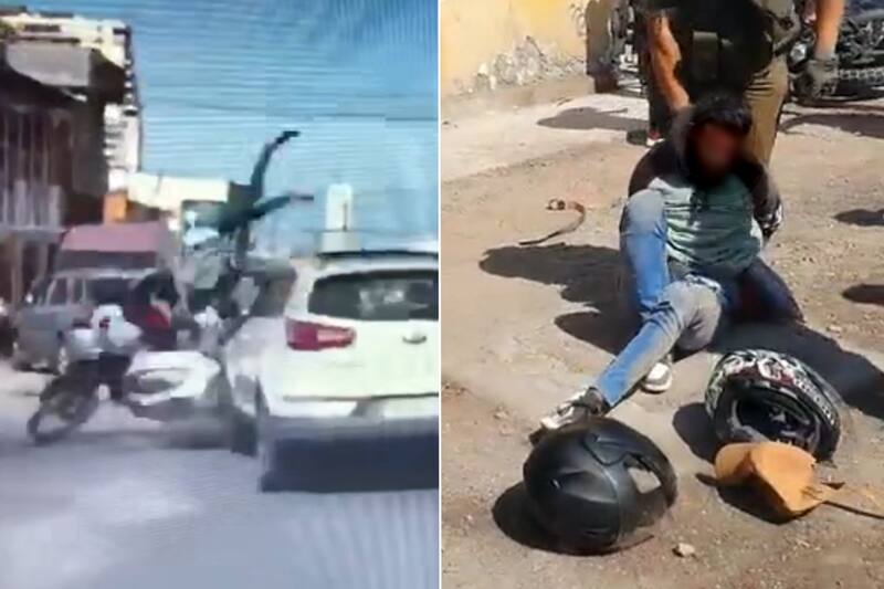 Video muestra a los asaltantes volando por los aires. Arrancaban tras asaltar a un conductor.