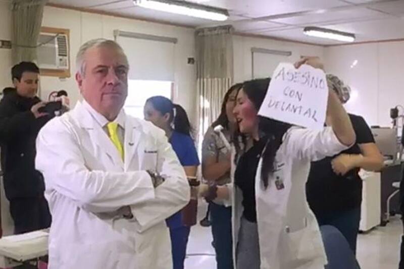 Su visita no fue bien recibida por los profesionales de la salud, quienes se montaron en el macho y sin temor alguno lo funaron. Acusan escasez de insumos en los recintos hospitalarios.