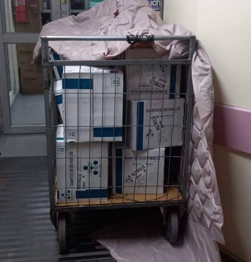 El robo de los insumos médicos se trataría de un total de 14 cajas contenedoras con 10 cajas que contenían 100 guantes quirúrgicos, productos avaluados en $1.100.000 que eran escondidos bajo mantas y pallets del recinto.