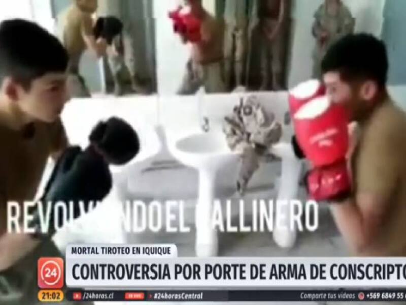 En uno de los registros, se ver con claridad al joven uniformado, que mató a dos suboficiales con su arma de servicio para luego quitarse la vida, peleando con guantes de boxeo con otro conscripto en el baño de la Escuela de Caballería Blindada de Iquique, mientras que de fondo se puede escuchar a personas avivando la contienda.