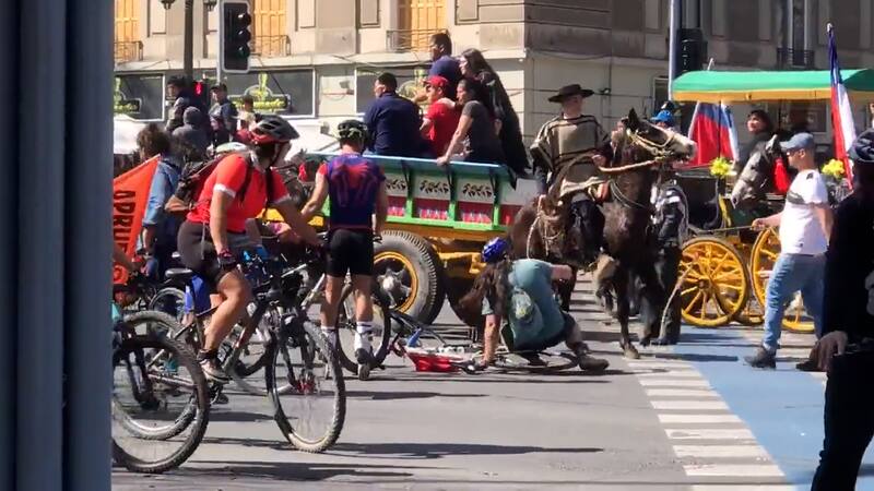 Un difícil momento se vivió durante la jornada de este domingo, después de un enfrentamiento que protagonizaron un grupo de huasos y ciclistas en la Alameda.