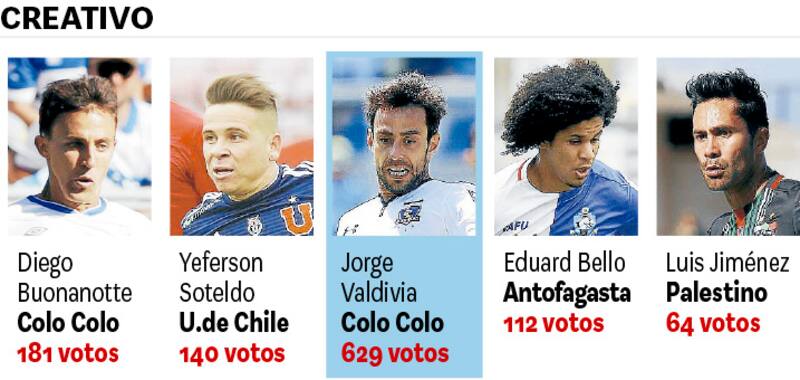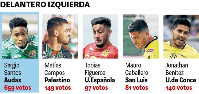 Por ahora los jugadores más votados en sus distintos puestos son Esteban Paredes (705), Sergio Santos (659) y Óscar Opazo (653).