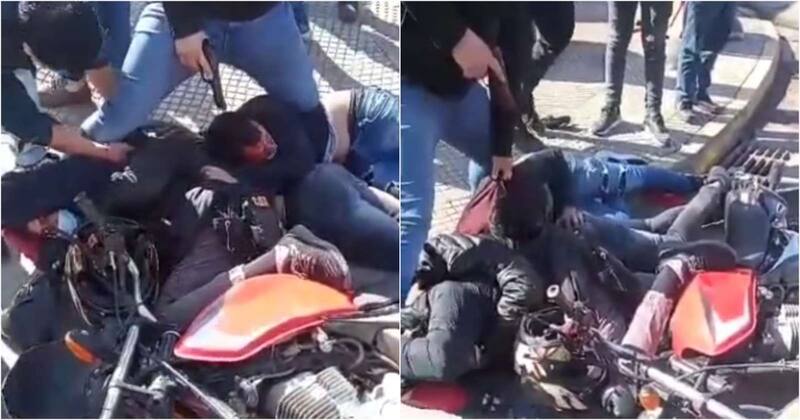 Una vez en el suelo, el funcionario le arrebató el arma a uno de los antisociales, logrando reducirlos ante la vista de distintos transeúntes.