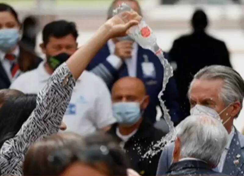 Luego de participar de una ceremonia en La Moneda, una mujer le arrojó agua al Presidente Sebastián Piñera.