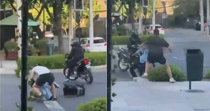 Tal como quedó registrado por testigos que compartían en un restaurante, el dueño del local fue víctima de un violento asalto por parte de dos motochorros que se hacían pasar por repartidores.