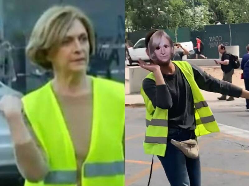 [Viral] Manifestantes dirigen el tránsito con máscaras de Evelyn Matthei