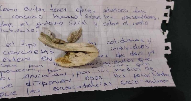 “Una de las cosas que más llamó la atención de esta diligencia, fue que los envoltorios contenedores de Hongos Psilocybes mantenían escritos en su interior una ‘Guía para el consumo y calidad de vida’, donde se le entregaba consejos a los consumidores para evitar tener efectos adversos al consumir este tipo de sustancias”, agregó.