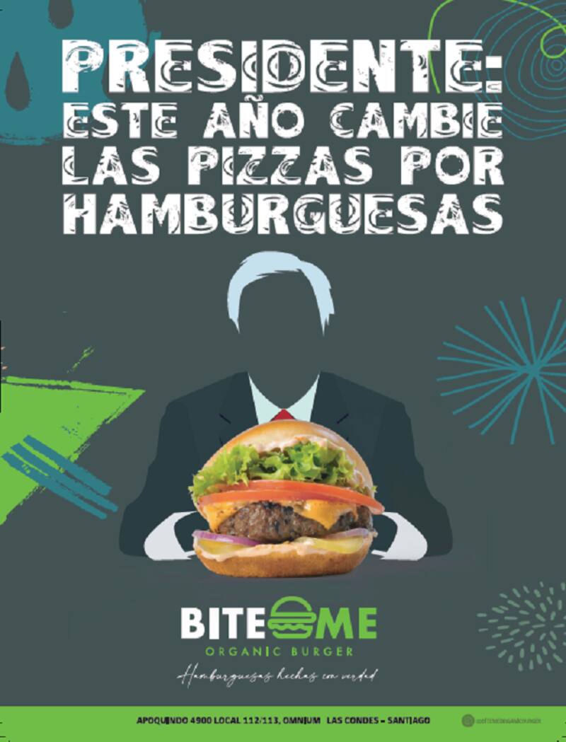 BiteMe, la nueva cadena de hambuerguesas orgánica en Chile, lanzó una creativa campaña invitando al mandatario a pasar por uno de sus locales a un año de su comentada visita a pizzería.
