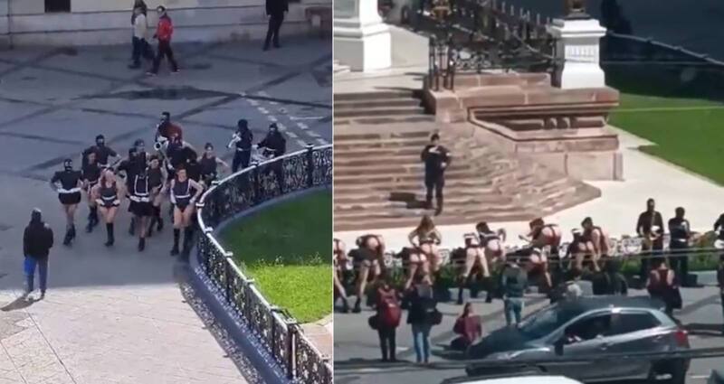 Tal como se puede ver en distintos registros difundidos en redes sociales, las jóvenes protagonistas se acercaron al lugar en ropa interior y comenzaron a bailar el himno de la Marina.